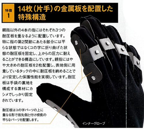 耐圧グローブ「プレスガード」 金型の交換作業や、重い材料の搬入、ハンマーを用いた打ち込み作業等ににおすすめです! 購入方法 耐圧グローブお求め、見積のご依頼につきましては、下記リンク先より弊社 営業部までご連絡ください。 見積依頼 製造元:株式会社ダイコープロダクト 製品一覧 ▼ 安全装置 光線式安全装置 ・SLC440 ・EOSシリーズ ・レーザー式プレスブレーキ用安全装置DSP-J ・レーザー式プレスブレーキ用安全装置DSP-AP エリアセンサー、ライトカーテン 3Dレーダー安全システム/SRDシリーズ KAG AIカメラ画像認識システム ・アドミラルAX人体検知装置 ・S3000レーザースキャナ型安全補助装置 ・SLC/SLGシリーズ ・EOS4 セーフティーライトカーテン その他の式安全装置 ・ウルトラスイッチ両手起動式安全装置 ・手引き式安全装置DT,DF型 ・AC型両手起動式起動装置 ・LB100安全補助装置 安全保護具 ・レーザー保護具 ・レーザーセーフティーフェンス ・安全手工具 ・ブロックフガード組立式安全柵 ・洗えるブロックガード その他安全具・部品 ・安全ブロック ・手押しスイッチ ・手引き式安全装置用部品 ・耐圧グローブ「プレスガード」 ・開口部寸法ゲージ ・安全装置 有効無効表示灯 安全支援業務 ・特定自主検査 ・安全教育出張講座 ・レーザーめがね性能検査 ・光環境検査 ・レーザー保護眼鏡 ・性能検査校正サービス ・KBM,荷重計測定器の校正サービス プレス周辺装置 荷重計 ・N800 ・N500 ・N700 ・TTLM ・オートセル ・T400センサー ・ソフトウェア ・仕様比較 ・動 画 ・荷重計の紹介 ・しくみ、機能、特長 ・カリブレーション ・コントローラー機能 ・カスタム製品 材料曲げ位置表示装置 B-スナイパー02 ・急停止性能測定器 KMB-4 ・スクラップシューター ・ タッチスタート ・シュメアザール製品 受注商品 ・セーフティーエンジニアリング1 ・セーフティーエンジニアリング1 ・シャッター型安全装置 ・手払い式安全補助装置 ・バリアガード ・荷重計 旧製品 ・光線式安全装置USK