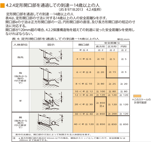 開口寸法ゲージを使うことで、正しい安全距離が