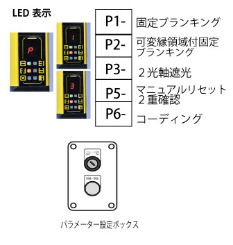 *固定ブランキングモード(パラメータP1)と、2光軸遮光モード(パラメータP3)は併用が可能です。