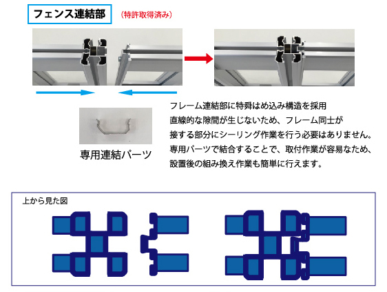 ・軽量 設置、組み換え作業が容易(特許取得済み)