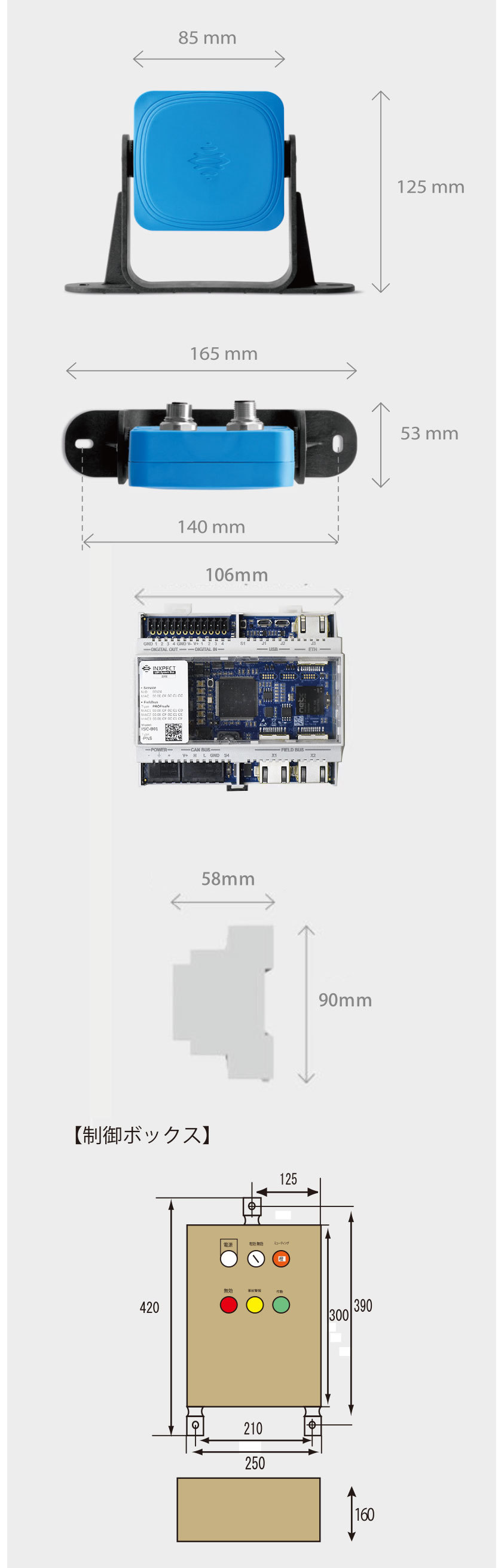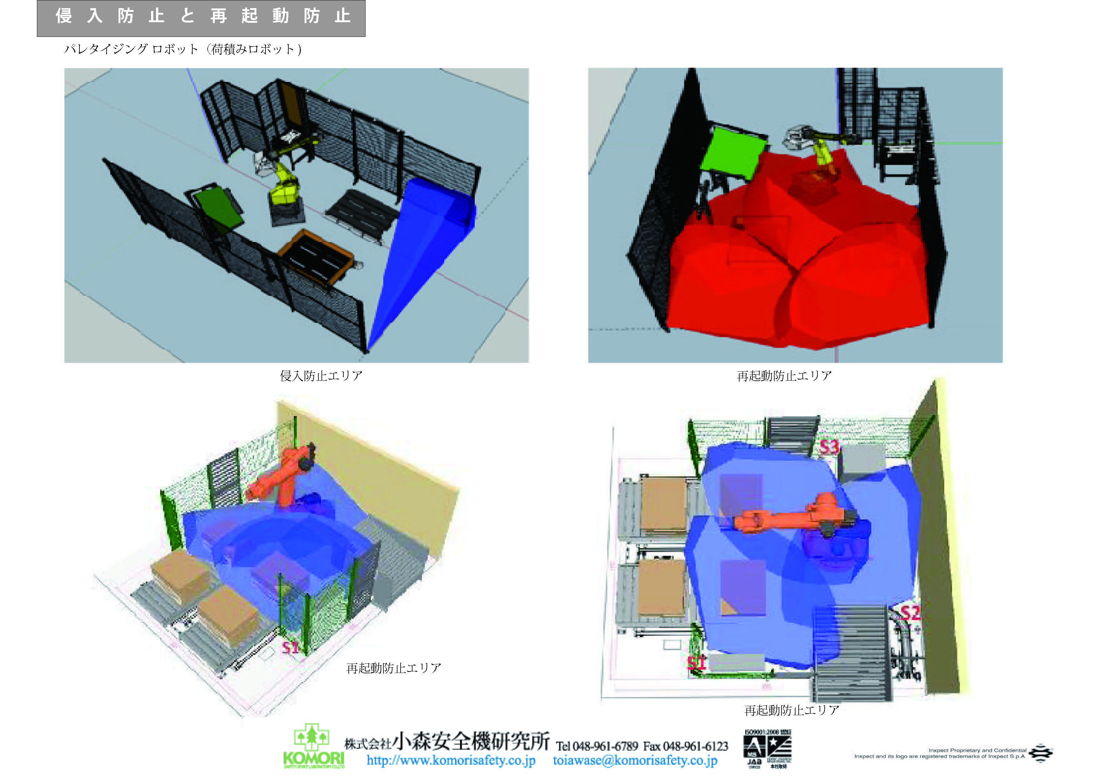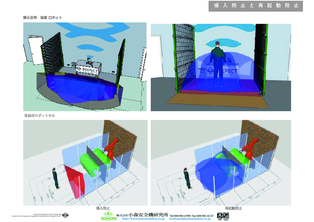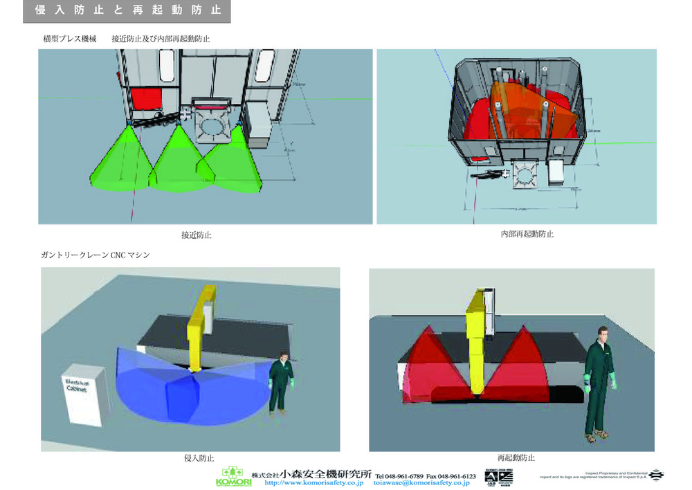 ロボセーフはSRD センサー(100または,200シリーズ) とKOMORI独自のコントロールボックスで構成され、制御する機器の出力に接続するだけで運用が可能なため、設置が簡単です。検出ゾーンの設定もアプリケーションでPCで設定可能です。