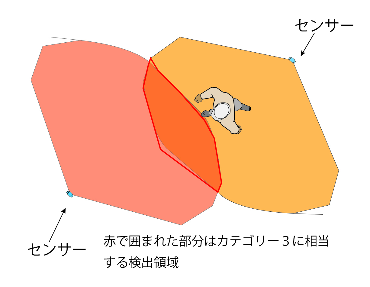 4.センサーのエリア設定を同じ位置にすることでカテゴリー3への構成が可能です。