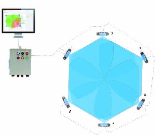 最大6台のセンサーで構成が可能です。監視対象の最大距離は4m(200シリーズの場合は5m9m) コントローラーからセンサーの距離は最長30m、広い検出距離と狭い検出距離の2つの設定モード。