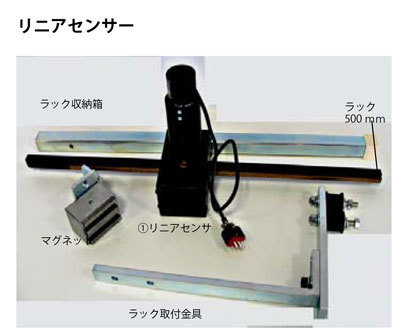 - ②リニアセンサーを図の位置に取り付けます。プレスのスライドとラックはラック取付金具を介し万力などで固定してください。