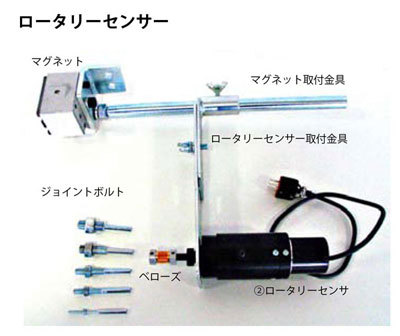 ⑥ 測定器の電源を入れ、定点位置表示灯が点灯する位置に、ロータリーセンサーの回転軸を回してください。(ロータリーセンサの定点マークシール位置を合わせます。)