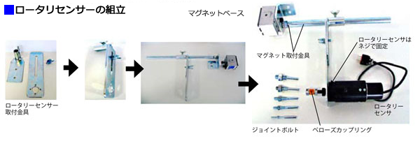② ロータリーセンサーを取付金具とマグネットを用いプレスに固定します 。