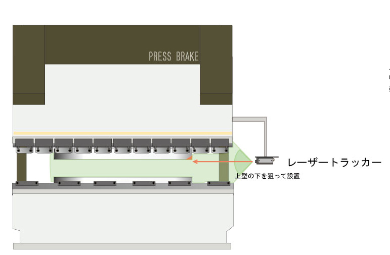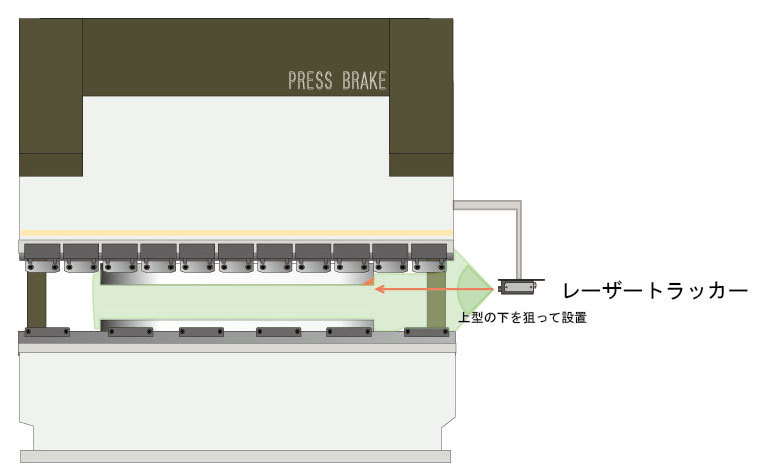 レーザートラッカーをプレスブレーキに取付ける事で、