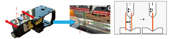 ▼バックゲージがなくても曲げ作業の位置ずれを修正できます。