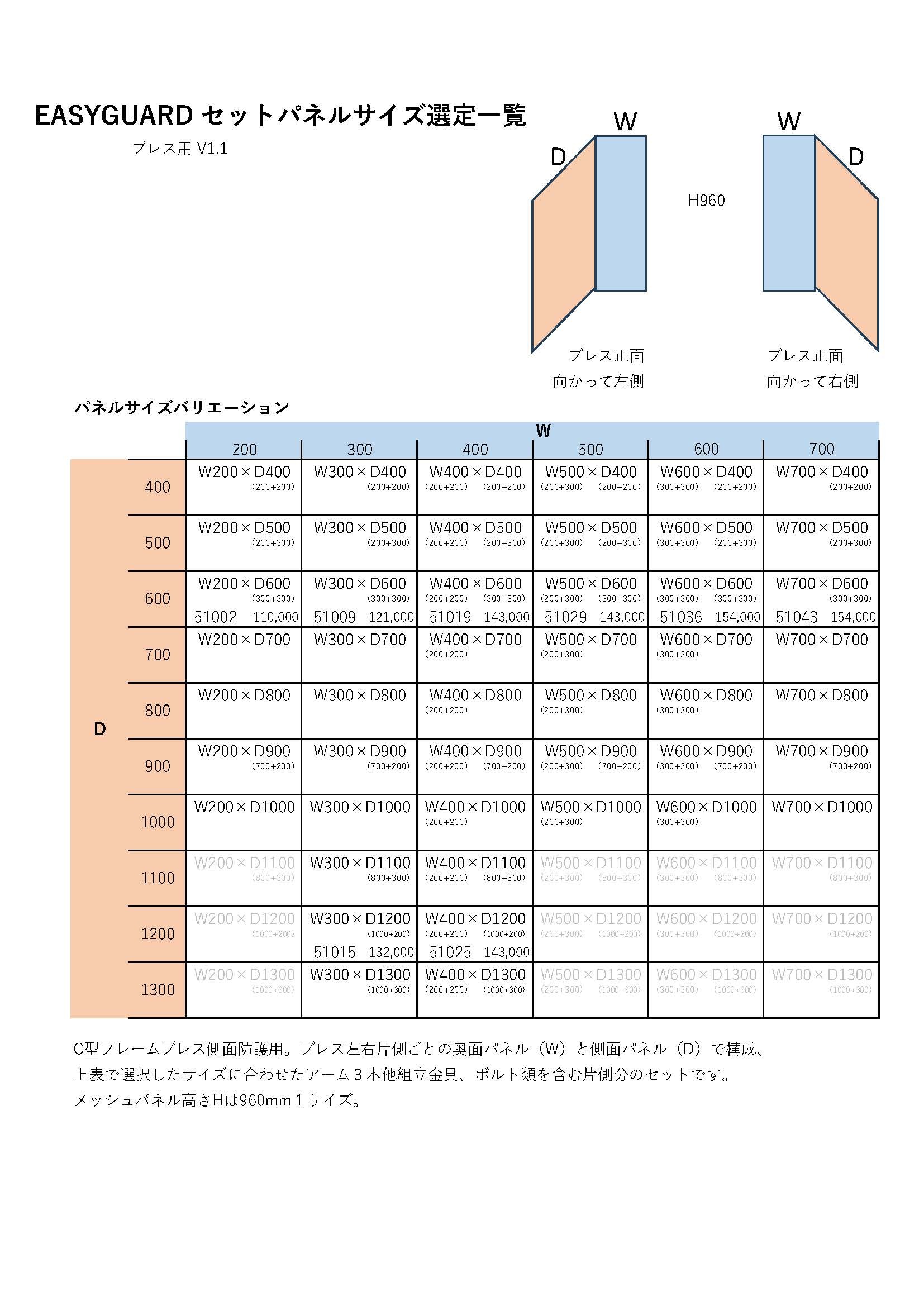 網目は幅17mmでパネル高さは全て960㎜。パネル幅は200~1000mm(100㎜きざみ)で選択可能。
