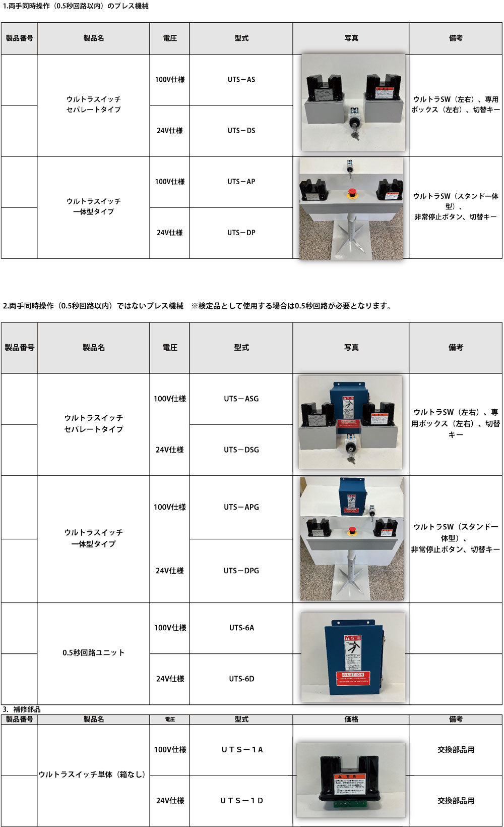 プレス機械用両手起動式安全装置 ウルトラスイッチ