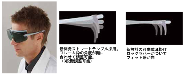 | 仕様 | めがね併用可能、エラストマークッション、テンプル角度調節可能 |