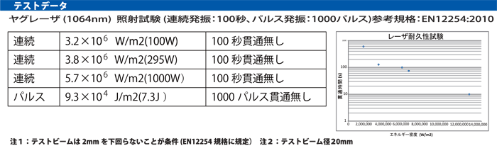 ●高出力レーザ対応 1000Wに対して 100秒貫通しない(1064nm)