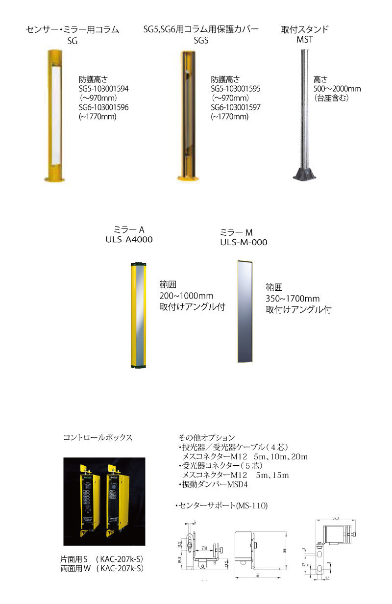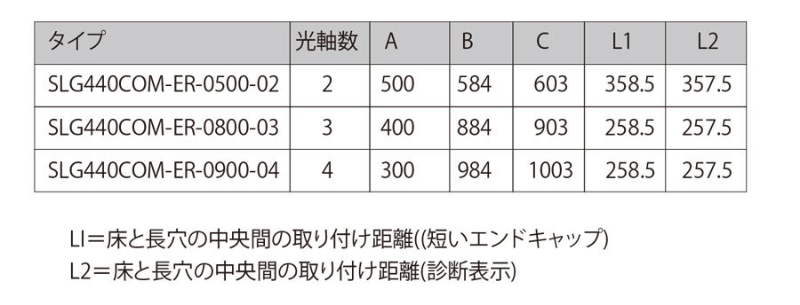 SLG COM型は光軸数2,3,4光軸間隔500,400,300mmのセーフティーライトグリッド