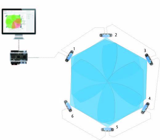 コントロールユニットは最大6台のS01スマートセンサを接続できます。センサーが1つでも介入を検知すると、コントローラーの安全出力が無効になります。