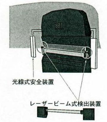 プレス機械や作業内容が専用化されていれば、安令措置も単一化することが可能だが、汎用化されていれば、それぞれに対応した安全措置が複数必要になる。実際にはプレス機械は汎用化されているので、安全対策は複数のものが必要になり、作業こ応じて選択して使用していかなければならない。例えば、連続打ち抜き作業専門のプレス機械であれば、固定のガードが最も安全性が高く生産性もあまり落とさないで対応できるが、大物作業、小物作業、絞り工程、曲げ工程など多様な作業を実施するなら、それぞれに応じた安全対策が必要なのである。残念ながら、現在のレベルでは、万能の安全装置は存在しない。光線式の安全装置では、二次加工の材料を保持して加工する時には支障があり、無効化して他の対策を実施しないと不可能なことがある。例えば光軸の一部を無効にする措置なども必要になってくる。安全装置として最近実用化されたものには、制御機能付光線式安令装置(PSDI)、レーザースキャナー、レーザービーム式プレスブレーキ安全検出装置などがある。