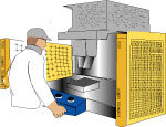 テクノアイは手が危険領域外に出たことを検出、自動的にプレスを起動させます。