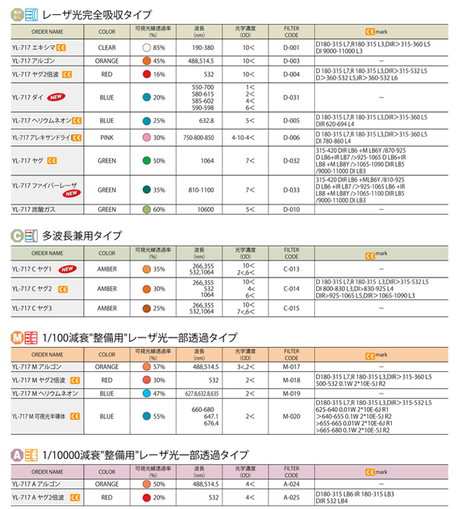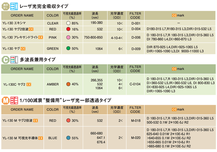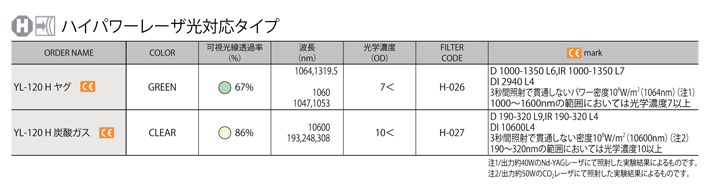 ・直接照射でも3秒間は安全性を確保(レーザー出力条件付き) ・光学濃度が高い
