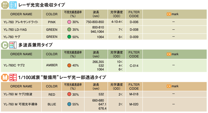 YL-760 モデル (ファイバ、ヤグレーザー、各種)