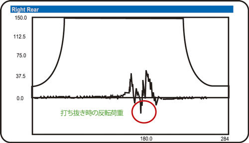 本体正面の中心位置に表示される液晶ディスプレイは、毎回の荷重の波形を表示。